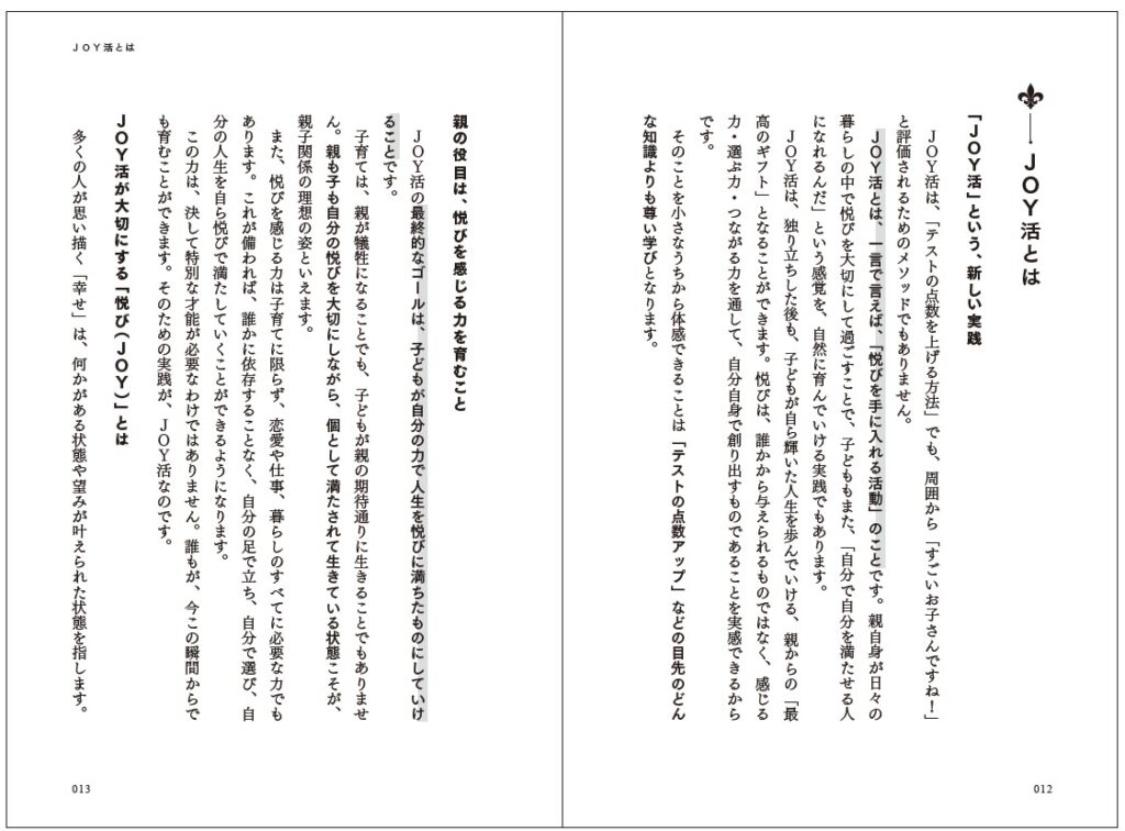 子どもが自ら悦びを感じられる力を育むことができるよう 「JOY活」というメソッドにして、一冊にまとめました!!