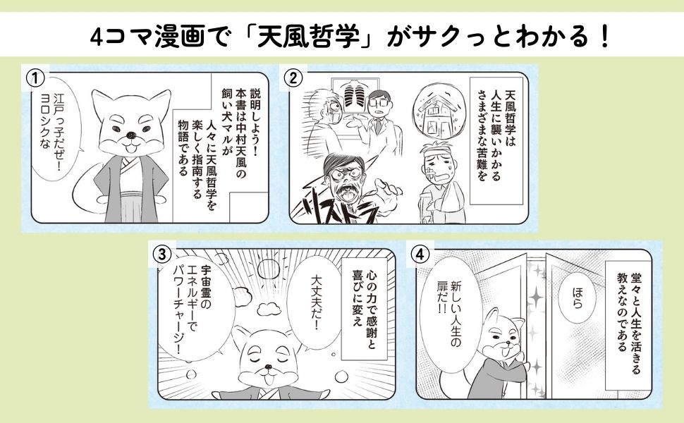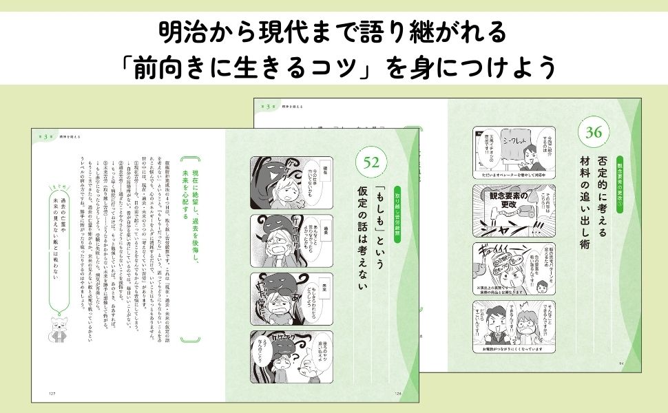 マンガは全体の約半分ほど、おもに見開き単位で中村天風の言葉や思想を“超訳”解説。
